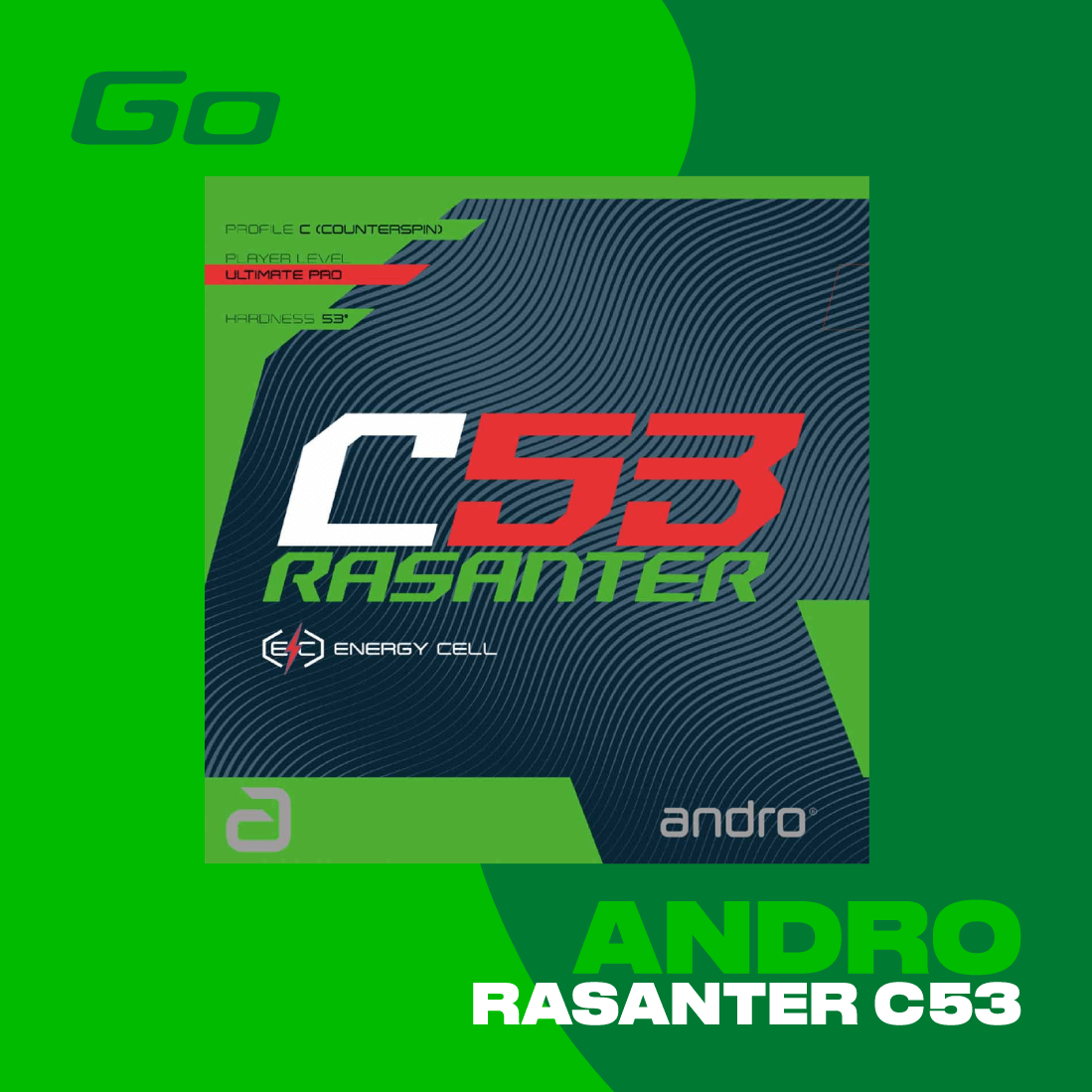 andro Rasanter C53 and C48 are the world's first table tennis rubbers specially developed for counterspin. In order to cushion the incoming topspin in a controlled manner and extend the ball contact time, the pimple design of the Rasanter C offers an integrated damper. This counterspin damper neutralizes the topspin and enables controlled counter-rotation with an aggressive flight curve and the incomparable dynamics that only an ENERGY CELL sponge can offer. This interaction of the counterspin design and the new top rubber recipe also opens up new options in the serve and return game. Give your serves more quality, your returns more variability and precision.