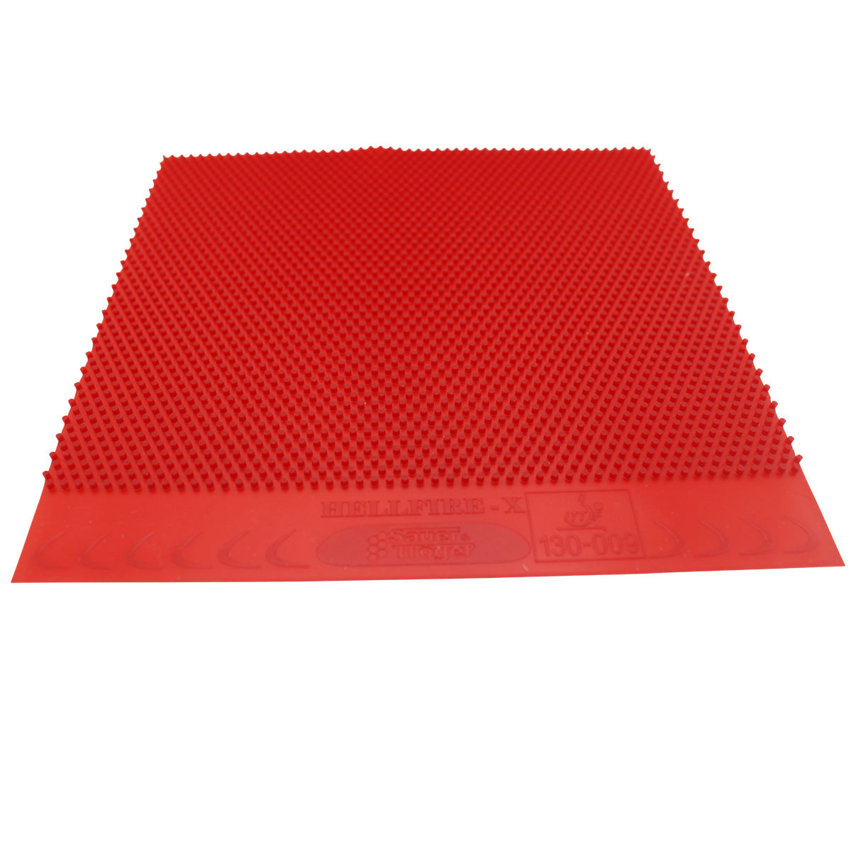 Der Sauer & Tröger Hellfire X wurde über mehr als drei Jahre in Zusammenarbeit mit Top-Noppenspielern unter der Leitung von Sebastian Sauer entwickelt. Das Ergebnis ist eine Langnoppe, die perfekt auf den Plastikball abgestimmt ist und neue Maßstäbe in Tempo, Kontrolle, Störeffekt und Schnittentwicklung setzt.