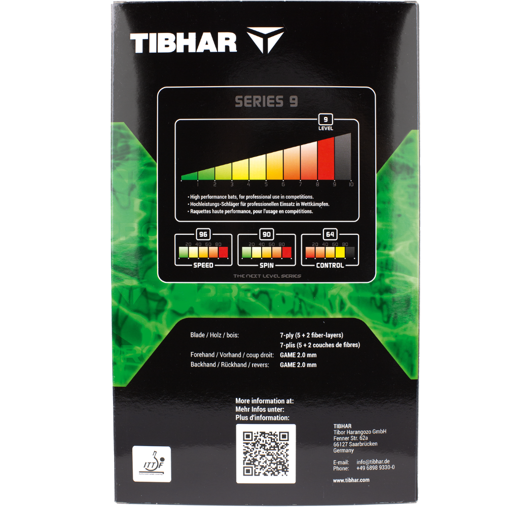 The Tibhar Pro Green Edition complete racket is aimed at ambitious recreational players and advanced players who are looking for a noticeable increase in speed, spin and power, while opting for a balanced overall package.